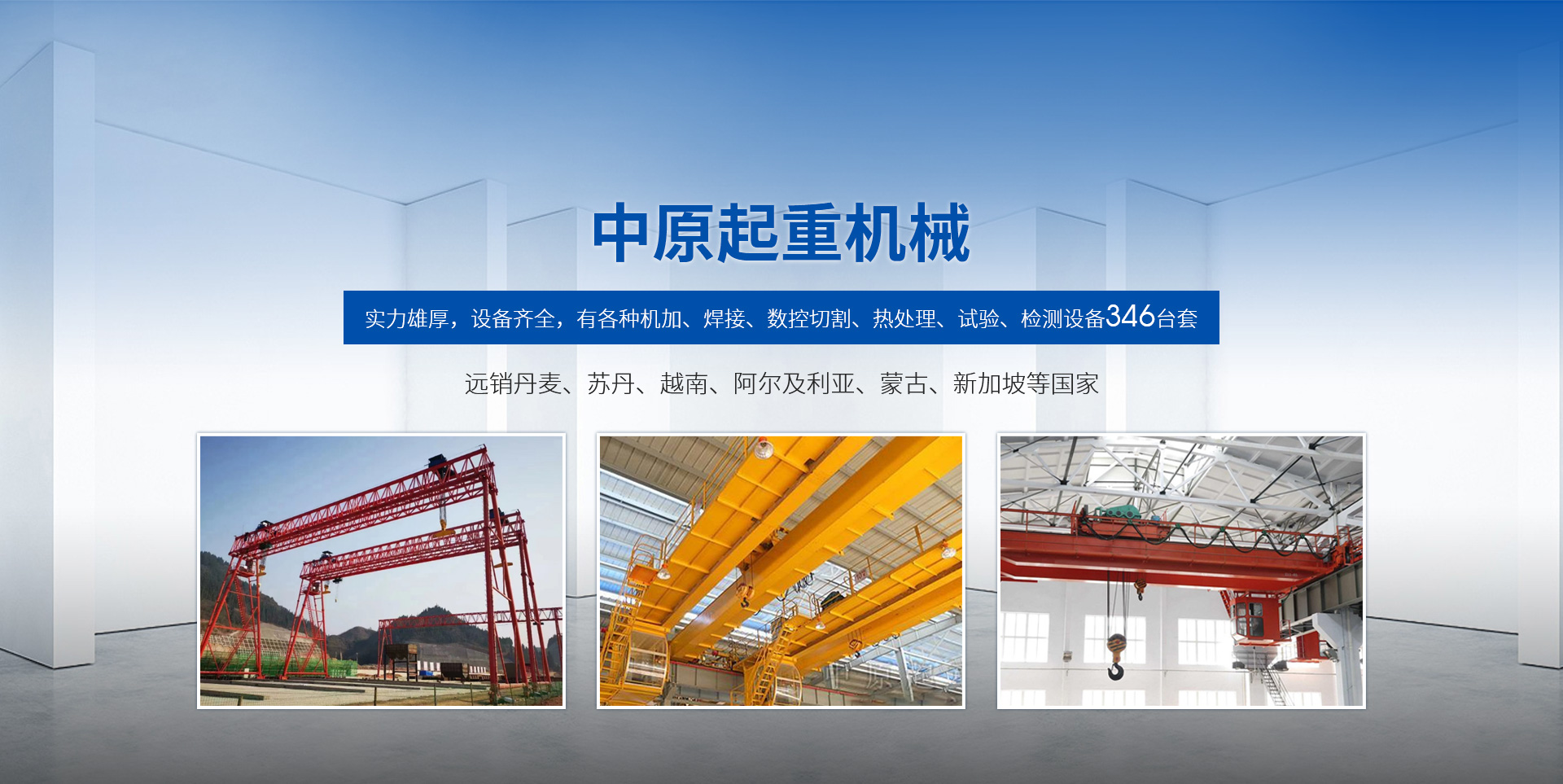新鄉(xiāng)市中原起重機械有限公司成立于2000年,地處中原,輻射全國28個省市自治區(qū),設外埠經(jīng)銷處、辦事處268個。產(chǎn)品行銷工礦、建材、化工、冶金、電力、交通、鐵路、油田、港口等各個行業(yè)。遠銷丹麥、蘇丹、越南、阿爾及利亞、蒙古、新加坡等國家。  公司實力雄厚,設備齊全,有各種機加、焊接、數(shù)控切割、熱處理、試驗、檢測設備7臺;有機加工、熱處理、單、雙梁橋門機生產(chǎn)、檢測、安裝等9個車間,研究中心、運輸公司、安裝維修服務公司等機構(gòu),?  主要產(chǎn)品有:LD型1~20噸電動單梁起重機系列產(chǎn)品;5~600噸通用橋式、門式、冶金、上旋轉(zhuǎn)下旋轉(zhuǎn)電磁吊、絕緣、抓斗、防爆起重機系列產(chǎn)品;LH3~100噸葫蘆雙梁系列產(chǎn)品;MH5~32噸葫蘆門式系列產(chǎn)品;0.5~40噸CD1、MD1鋼絲繩電葫蘆系列產(chǎn)品;HS1型0.5~20噸手動葫蘆系列產(chǎn)品;0.5~10噸環(huán)鏈電動葫蘆系列;0.5~40噸彎道電動葫蘆系列產(chǎn)品;裝卸橋、造船門機、架橋機、鑄造吊和水電大噸位起重機系列產(chǎn)品。  公司建立了強有力的質(zhì)量保證體系和生產(chǎn)過程的質(zhì)量控制系統(tǒng),嚴格執(zhí)行國家設計、生產(chǎn)標準,有嚴格的生產(chǎn)工藝過程和標準,嚴格的檢驗、檢測標準和手段。